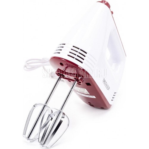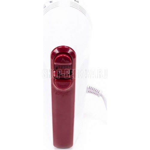Параметры Номинальная потребляемая мощность 400 Вт Описание Миксер предназначен для смешивания продуктов, создания однородной массы и обогащения взбиваемой жидкости воздухом Миксером взбивают и замешивают яйца, сливки, коктейли, мусс, омлет, легкое тесто, пюре, соусы и другие продукты Цвет: белый с бордовым Кнопка извлечения насадок 2 венчика для взбивания яиц и крема 2 насадки для замешивания теста 5 скоростных режимов Режим "ТУРБО"