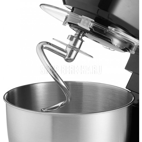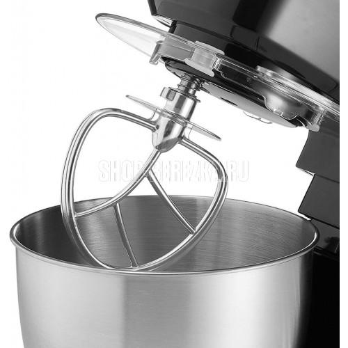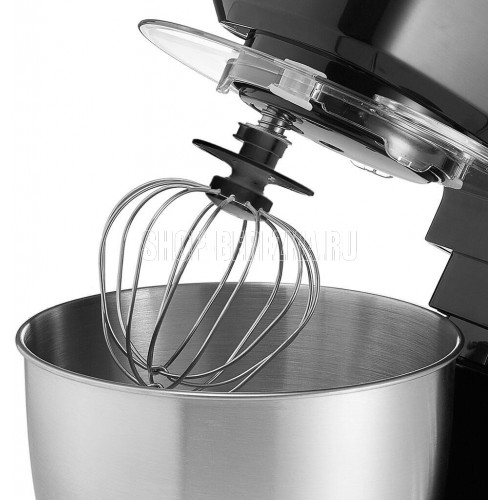 Номинальная потребляемая мощность 1000 Вт, Объем чаши 3,5 л, Планетарная система смешивания: миксер оснащен уникальной технологией «планетарного» движения, когда венчик совершает обороты в одну сторону, а привод в это время движется по кругу в другую сторону, позволяет осуществлять перемешивание по всему объему чаши, Многофункциональный: с его помощью можно взбивать коктейли, замешивать тесто, готовить картофельное пюре и разнообразные кондитерские изделия, Цвет: черный, Съемная чаша из нержавеющей стали, Съемная прозрачная крышка с отверстием для добавления продуктов.