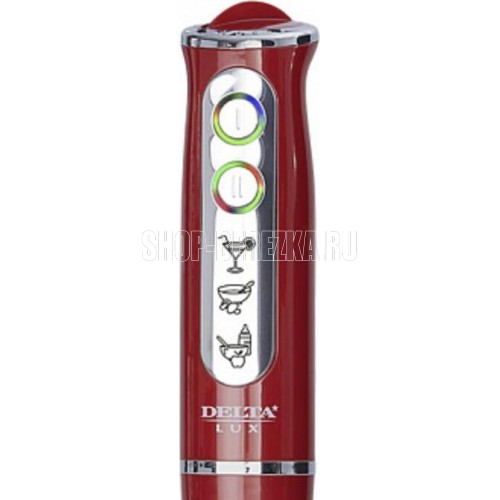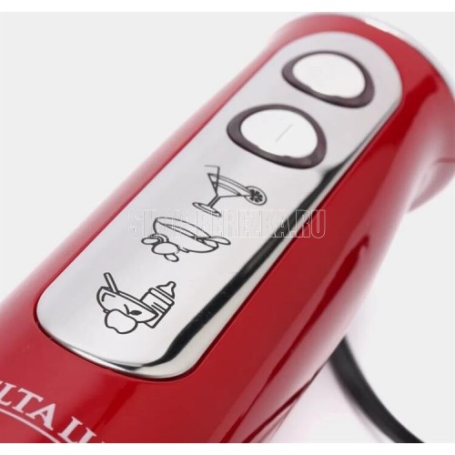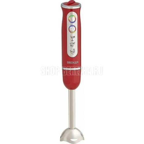 Номинальная потребляемая мощность 800 Вт, Блендер предназначен для смешивания, измельчения и взбивания продуктов и жидкостей в бытовых условиях, Цвет: красный, Индикатор сети с LED-подсветкой кнопок, Насадка и нож из нержавеющей стали с 4 лезвиями, Плавная регулировка скорости, Режим «ТУРБО», Упаковка: цветная коробка.