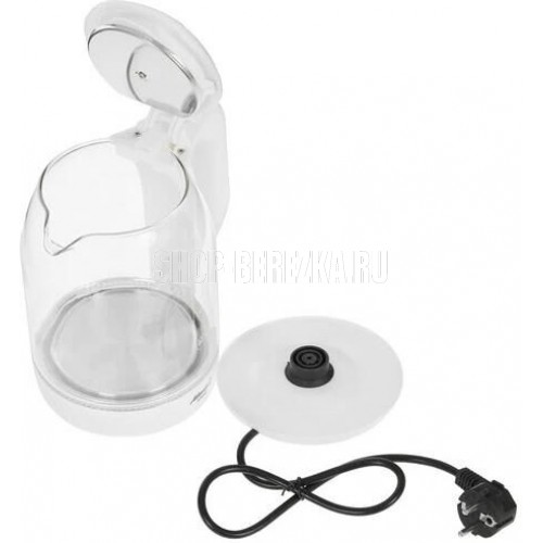 Корпус из термостойкого стекла.Объем 1,8 литра.Иллюминация .Специальная ручка от скольжения.Поворот на подставке на 360° .Быстрое закипание. Фильтр от накипи .Закрытый нагревательный элемент. Автоматическое отключение. Защита от перегрева без воды. Электрошнур в цокольной подставке, 55 см. Номинальная мощность 1800 Вт230 B ~ 50 Гц.
