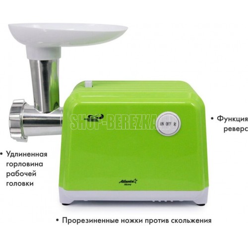 Мощность 2000 Вт. Производительность 2,5 кг/мин. Реверс. Нож из нержавеющей стали. Две решетки в комплекте 3, 5 мм. Насадка для приготовления колбас. Насадка для кеббе. Корпус с гигиеничным покрытием. Кабель питания 100см. 230 B ~ 50 Гц.