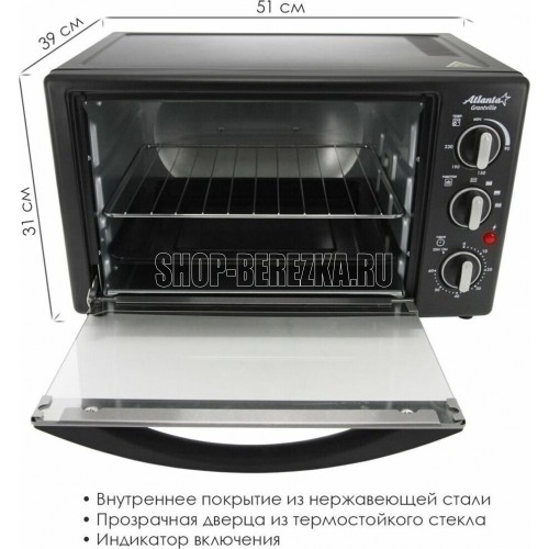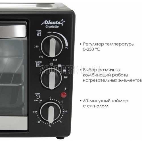 Объём 36 литров. Выбор различных комбинаций работы нагревательных элементов. Регулятор температуры 0-230 °C. Защита от перегрева. Световой индикатор работы. 60-минутный таймер с сигналом . Номинальная мощность 1500-1650 Вт. Кабель питания 80 см. 220-240 B ~ 50 Гц.