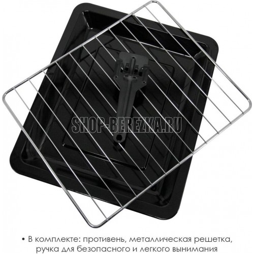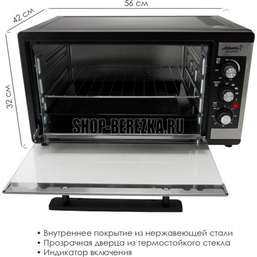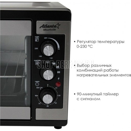 Объём 46 литров. Выбор различных комбинаций работы нагревательных элементов. Регулятор температуры 0-230 °C. Защита от перегрева. Световой индикатор работы. 60-минутный таймер с сигналом . Номинальная мощность 1500-1650 Вт. 220-240 B ~ 50 Гц.