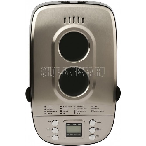 Мощность 860 Вт. Вес выпечки 1.5 кг. Теплоизолированный корпус. 2 ножа для замеса теста. Звуковой сигнал. Антипригарное покрытие пекарной камеры и ножей. LCD-дисплей с подсветкой и цифровое управление. Цвет корочки: светлый, средний, темный. Защита от перегрева. Съемный контейнер для запекания. Автоматическая система подогрева в течение 1 часа. Отсрочка старта 15 ч. Отделка нержавеющей сталью. Функция добавления ингредиентов во время приготовления. Длина шнура 1 м.