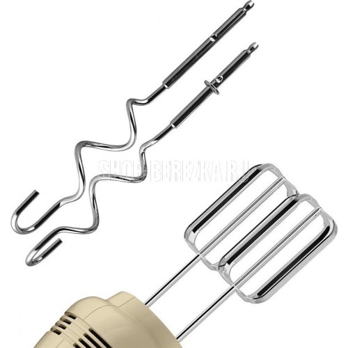 Мощность 400 Вт. Кол-во скоростей 5. Turbo режим. Кнопка освобождения насадок. Пара насадок для взбивания. Пара насадок для замешивания. Экологичный пластиковый корпус.