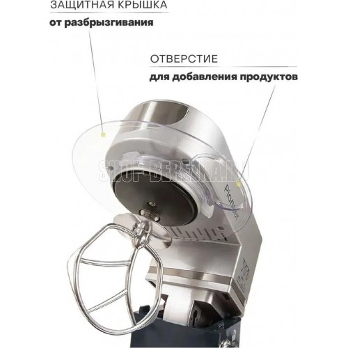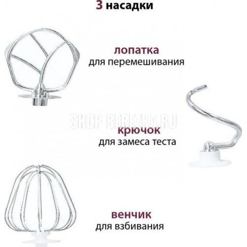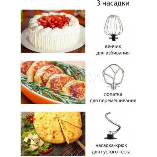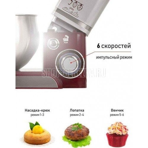 Миксер планетарный, cтильный дизайн, максимальная мощность: 1000Вт, чаша из нержавеющей стали, объем чаши 5 л, защитная прозрачная крышка от брызг, 6 скоростей,импульсный режим, защита двигателя от перегрева, светодиодный индикатор включения, наклонная головка позволяет легко снимать чашу и менять аксессуары, планетарное вращение для тщательного перемешивания, удобная крышка с отверстием для добавления продуктов во время перемешивания, противоскользящие ножки