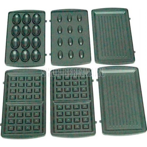 Мультипекарь мощность: 1800 Вт. Индикаторы нагрева и готовности, надёжный фиксатор крышки, материал корпуса пластик. 3 пары съёмных металлических панелей с антипригарным покрытием: венские вафли, гриль, орешница Сеть: 220-240В, 50Гц.