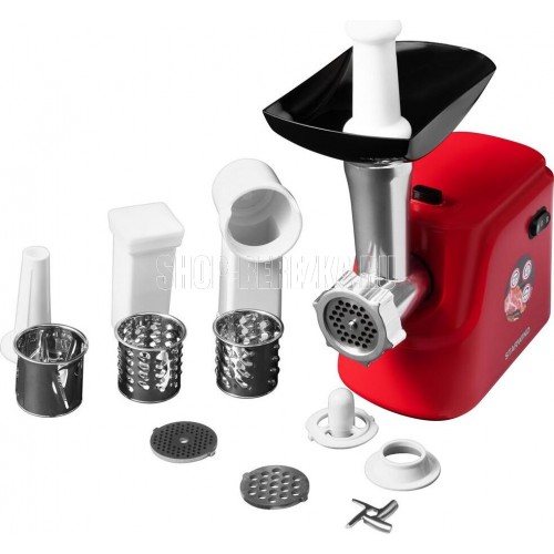 Максимальная мощность1500Вт Количество скоростей1 Функция реверсаДА Защита двигателя от перегрузкиДА Защита от перегреваДА Перфорированный диск для фарша3 Насадка для приготовления домашних колбасДА Насадка для кеббеДА Насадка для шинковкиДА Вес1.8кг Цвет мясорубкикрасный Материал лоткапластик Материал корпусапластик Прорезиненные ножкиДА Длина сетевого шнура1м ТолкательДА Габариты упаковки (ед) ДхШхВ0.28x0.23x0.29м Срок гарантии12 мес.