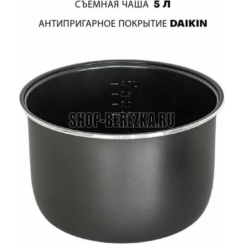 Мультиварка, объем чаши: 5л, мощность: 860 Вт, электронное управление, цифровой светодиодный дисплей, чаша с антипригарным покрытием: Daikin, количество автоматических программ: 11, количество программ ручной настройки: 145, функция "МУЛЬТИПОВАР", функция "СМАРТШЕФ плюс", термоизолированный корпус, поддержания температуры: до 12 часов, отложенный старт: до 24 часов