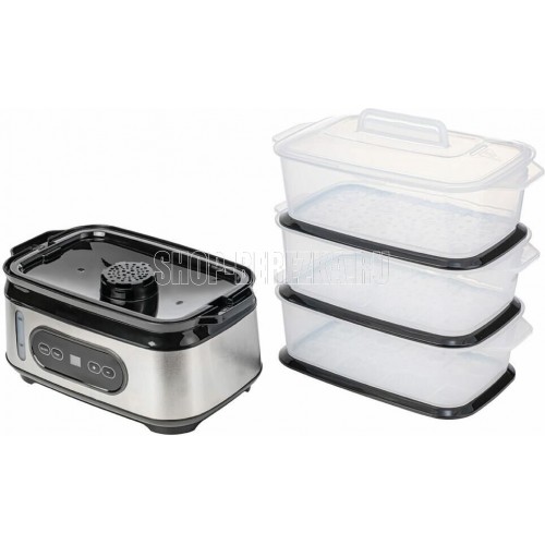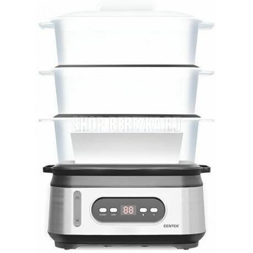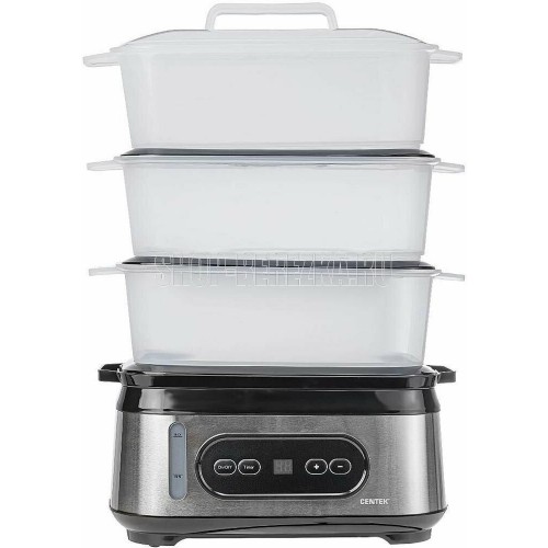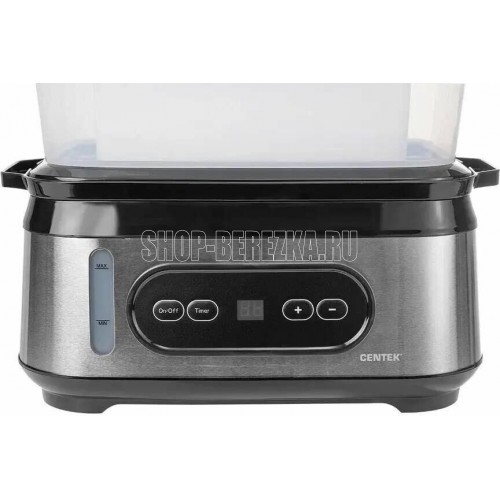 CENTEK CT-1459 Мощность1050 Вт Общий объем 9 л Таймер 60 мин. 3 чаши для приготовления Быстрое парообразование Резервуар для воды1.5 л Индикатор работы Приборная панель Окно уровня воды Чаша рисоварка Стальной корпус Габариты в собранном виде330*214*452 мм