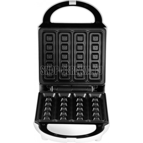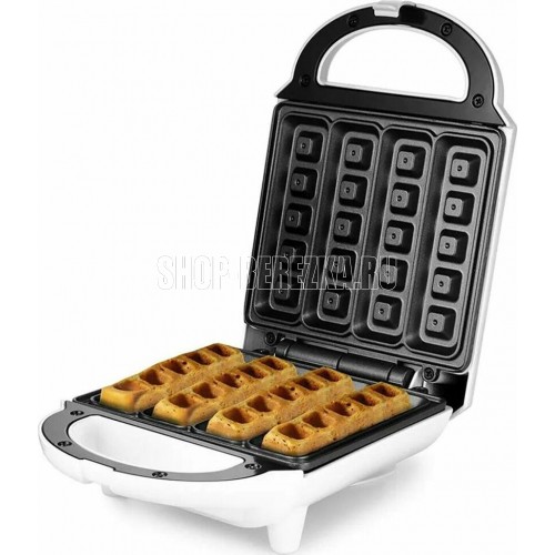 Мощность 460 Вт. Тип управления механическое. Покрытие рабочих частей антипригарное. Форма нагревательных частей прямоугольная. Количество отделений в пластине для вафель 4. Индикатор нагрева есть. Замок фиксации закрытия крышки есть. Материал корпуса термопластик. Цвет белый.