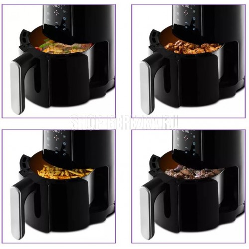 Аэрогриль Kitfort КТ-2225 1000Вт черный Мощность 1000 Вт Длина шнура 0,7 м Объём 1,9 л Количество программ приготовления 6 + ручные настройки Регулировка температуры от 80 °C до 200 °C с шагом 5 °C Таймер до 60 мин, шаг 1 мин Управление сенсорное Размер устройства 210 х 275 х 284 мм Размер упаковки 268 х 268 х 317 мм Вес нетто 2,5 кг Вес брутто 3,0 кг