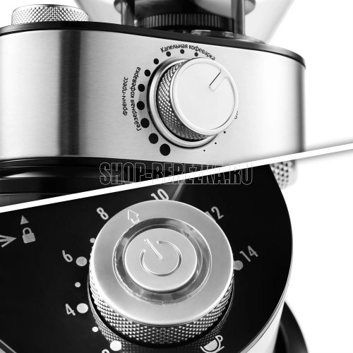 Система помола жернова. Мощность 200 Вт. Вместимость 100 г. Регулировка степени помола есть. Возможность помола специй есть. Съемный резервуар для кофе есть. Автоматическая система отключения есть. Длина сетевого кабеля 0.98 м. Материал корпуса пластик. Цвет нержавеющая сталь.