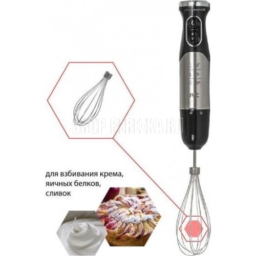 Блендер погружной, набор, максимальная мощность 1200 ватт, регулировка скорости, режим ТУРБО, светодиодная подсветка , мерный стакан 600 мл, венчик для взбивания, венчик для вспенивания молока, петля для подвешивания, длина кабеля 1,15 м.