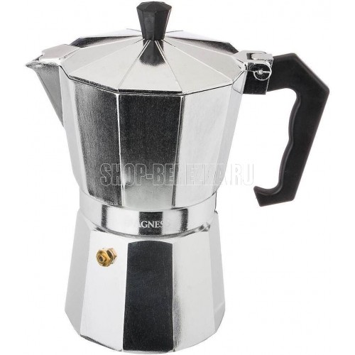 Гейзерная кофеварка ТМ AGNESS дарит возможность наслаждаться вкусным, ароматным и качественным кофе даже в домашних условиях. Напиток, приготовленный по принципу гейзера, получается более ароматным, чем фильтрованный кофе из капельных кофеварок. Основным преимуществом напитка из гейзерной кофеварки можно назвать отсутствие кофейной гущи, т.к. сама конструкция изделия исключает попадание осадка в сосуд для готового кофе. Эргономичная ручка очень удобна и позволяет не обжигаться. Кофеварку можно использовать на электрических, газовых или стеклокерамических видах плит. Конструкция кофеварок гейзерного типа настолько универсальна и проста, что такой прибор можно использовать дома, в офисе и даже при выезде на природу.