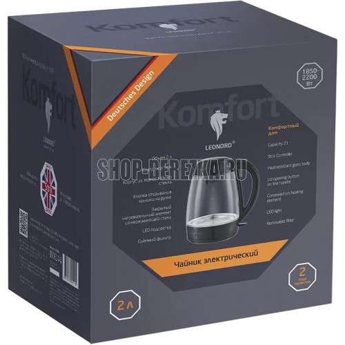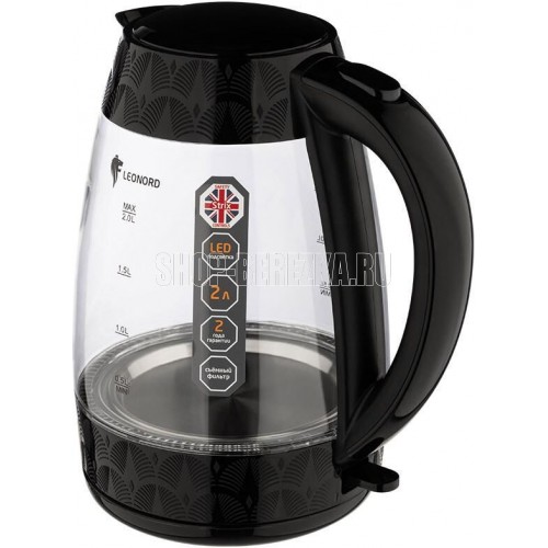 Мощность 1850-2200 Вт Объем 2л Корпус из термостойкого стекла Кнопка открывания крышки на ручке Закрытый нагревательный элемент из нержавеющей стали Поворот на подставке 360° Защита от работы без воды Автоматический выключатель LED подсветка Съемный фильтр Контроллер STRIX (Англия) Гарантия 2 года Длина шнура 75 см