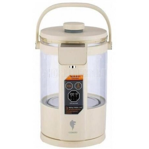 Мощность 1260-1500 Вт Объем 2,5 л Колба из термостойкого стекла LED дисплей Сенсорная панель управления 3 автоматических температурных режима Автоматическое поддержание температуры после кипячения Поворот на подставке 360° Ручка для удобной переноски Автоматическая подача воды нажатием кнопки Замок-защита от детей Закрытый нагревательный элемент из нержавеющей стали Защита от работы без воды Напряжение 220-240 В, 50-60 Гц Гарантия 2 года Длина шнура 78 см