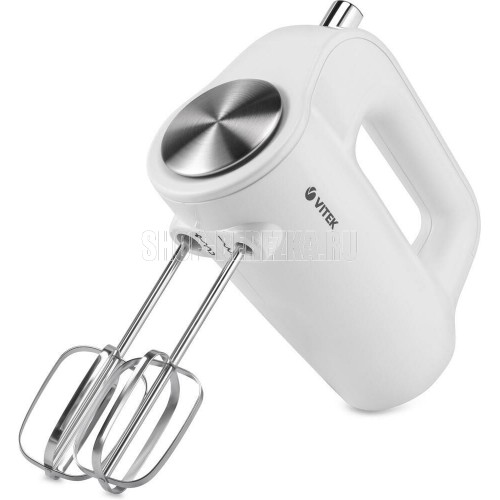 Миксер ручной. Мощность: 600 вт, Число скоростей: 5, Турборежим, Венчик для взбивания: 2, Крюки для замешивания теста, Количество насадок: 4, Кнопка отсоединения насадок, Материал корпуса: пластик, Длина сетевого шнура: 120 см, Цвет: Белый