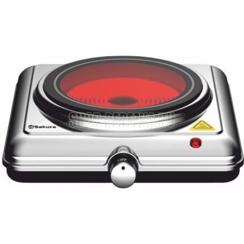 Плитка настольная с инфракрасным нагревом, 1 стеклокерамическая конфорка, мощность 1200 Вт, диаметр конфорки 16.5 см, размер прибора - 257*290*75мм, максимальная температура нагрева 510-530С, максимальная нагрузка на конфорку 8кг, механическое управление, световой индикатор, шнур 0,8 м, цвет: нерж.сталь / черный