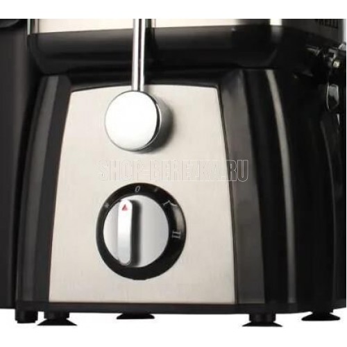 Соковыжималка центробежная. Мощность 1500 Вт, питание 220-240В, 50Гц, металлический корпус и фильтр, объем резервуара сока 1л., 2 скорости + импульный режим, широкая загрузочная горловина - 75мм, объем контейнера для жмыха 1л, функция "Капля-стоп, прорезиненные ножки, защита от перегрева и перегрузки, блокировка двигателя при открытой крышке, легкая очистка