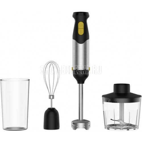 Блендер; Мощность: 1500Вт; Мерный стакан: 700мл; Чаша измельчителя : 500 мл; Число скоростей: 2; Плавный регулятор мощности; Удобная эргономичная ручка; Ножи из нежавеющей стали; Металлическая погружная часть; Венчик для взбивания; Сеть: 220-240 В, 50 Гц