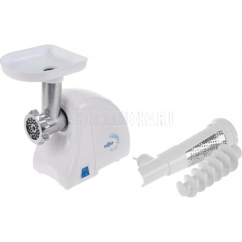 цвет белый, мощность: 250 Вт производительность: 0.58 кг/мин система реверса: есть насадки: диск для фарша материал корпуса: пластик тип соковыжималки: шнековая особенности: прорезиненные ножки, мытье в ПММ
