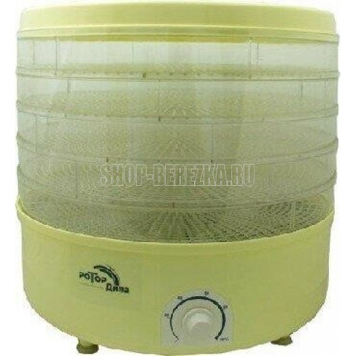 РОТОР ДИВА 5 прозрачными решетками (СШ-007) (цветная упаковка). Мощность 520Вт. Max t воздуха на нижнем поддоне,°С: 70. Объем сушильной камеры 20л. Габариты: 40х39см. Масса 5кг.