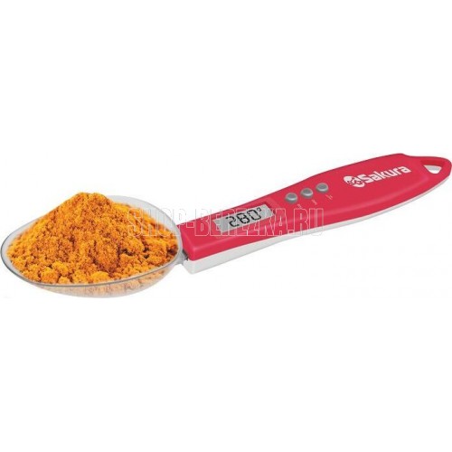 Электронные, макс.нагрузка 300 г, цена деления 0.1 г, LCD дисплей, высокоточные датчики, большая вместительная ложка, функция тарирования, индикатор перегрузки и низкого заряда батареи, автоотключение, питание 2 x AAA, пластиковый корпус, цвет: черный / красный