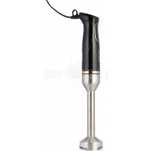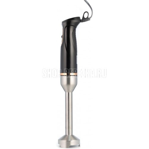 Мощность 800 Вт. Мерный стакан 600 мл. Чоппер 600 мл. 2 режима работы. Съемная насадка и венчик. Лезвия из нержавеющей стали. Специальная заточка лезвий. DC мотор. Комплект аксессуаров: Чоппер. Миксерный венчик .Блендерная насадка .Мерный стакан.