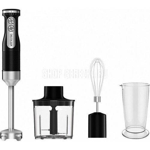Максимальная мощность 1000Вт. Номинальная потребляемая мощность 600 Вт. Объем чаши измельчителя 500 мл. Объем мерного стакана 700 мл. Блендер электрический предназначен для смешивания, измельчения и взбивания продуктов и жидкостей в бытовых условиях. Цвет: черный. Насадки и ножи из нержавеющей стали. Специальная заточка ножей. Три сменные насадки: насадка для смешивания, венчик для взбивания, измельчитель. Противоскользящие ножки чаши измельчителя. Мерный стакан. 5 скоростных режимов. Режим «ТУРБО». Плавная регулировка скорости.