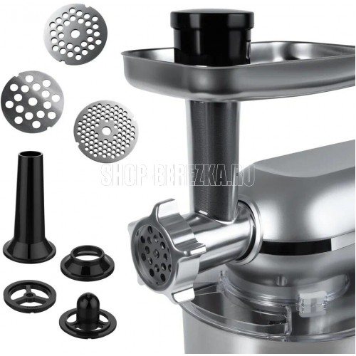 Многофункциональный кухонный комбайн R101-200 мощностью 1500 Вт с 6 скоростями и импульсным режимом (от 70 до 220 об/мин) станет незаменимым помощником на кухне. Прибор работает от сети 220-240 В (50-60 Гц) и оснащен 4.5-литровой чашей из нержавеющей стали и 1.5-литровым стеклянным блендером, сочетая функции мясорубки, блендера, планетарного миксера и овощерезки (докупается отдельно). Прочный АБС-пластиковый корпус в железно-сером цвете дополнен LED-индикатором работы и удобным рычагом для подъема рабочей головки. Особенности включают плавную регулировку скорости, импульсный режим, ножки-присоски для устойчивости и простую смену насадок. В комплекте: металлическая чаша, защитная крышка, крюк для теста, плоский битер, венчик для взбивания, блендер, мясорубка (с насадками для колбасок и кеббе), руководство пользователя. Устройство упаковано в подарочную и транспортировочную коробки, а уровень шума менее 75 дБ делает работу комфортной. Идеальный выбор для профессиональных кулинаров и домашних поваров.
