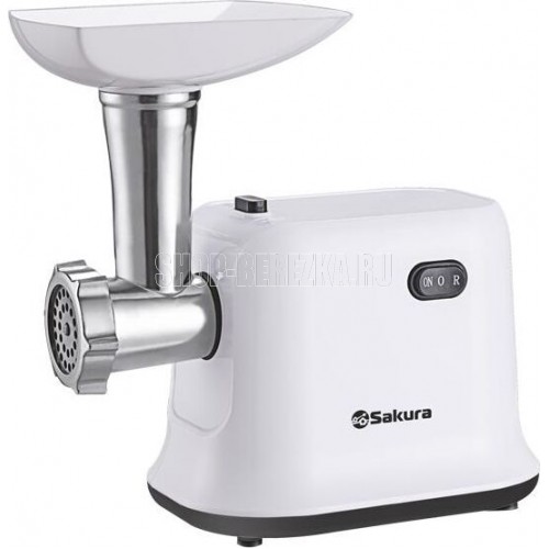Мясорубка электрическая, 1500 Вт, функция реверс, корпус из эко-пластика, пластиковый лоток для продуктов и толкатель, металл. шнек, нож из нерж.стали, металл диск для измельчения (5 мм), отключение при перегреве.3 насадки-тёрки.