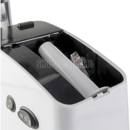 Номинальная потребляемая мощность 500 Вт. Максимальная мощность 1200 Вт. Функция "Реверс" Диски мелкой, средней и крупной нарезки Литой нож Насадка для приготовления "кеббэ" и сосисок Металлический лоток для продуктов Отсек для хранения принадлежностей Прорезиненные ножки, препятствующие скольжению Защита двигателя от перегрузки Напряжение сети, В: 220-240 Частота, Гц: 50