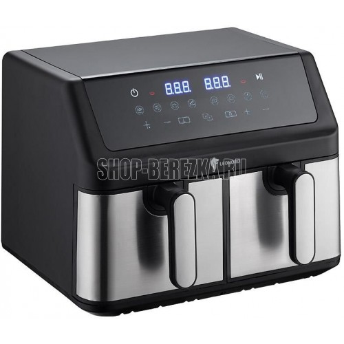 Мощность: 2100 Вт (1050 Вт+ 1050 Вт) Объем 9 л ( 4,5 л + 4,5 л) Два независимых нагревательных элемента Чаши с антипригарным покрытием Сенсорная панель управления 8 автоматических программ приготовления Регулятор температуры 80-200 С Таймер на 60 мин Автоотключение Съемная решетка Ненагревающаяся ручка Циркуляция воздуха 360 С Функция SyncPro - позволит получить готовые блюда к одному и тому же времени Книга рецептов в подарок Гарантия 2 года