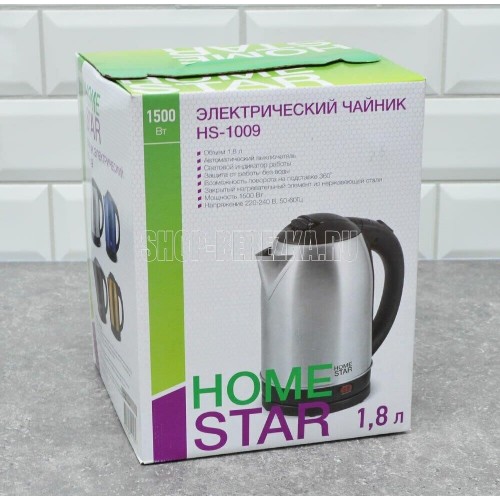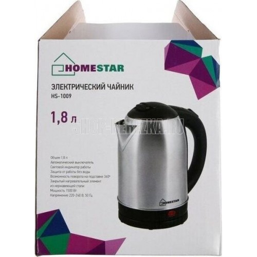 Мощность: 1500Вт. Объем: 1,8л. Корпус из нержавеющей стали. Автоотключение при закипании. Защита от работы без воды. Возможность поворота на подставке на 360град. Закрытый нагревательный элемент из нержавеющей стали.