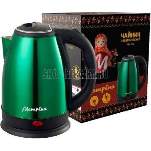 Объем 1,8 л Корпус из нержавеющей стали Закрытый нагревательный элемент из нержавеющей стали Поворот на подставке 360° Защита от работы без воды Автоматический выключатель Световой индикатор работы Место для хранения шнура Мощность 1500 Вт Цвет зелёный