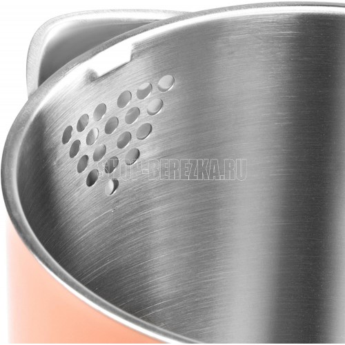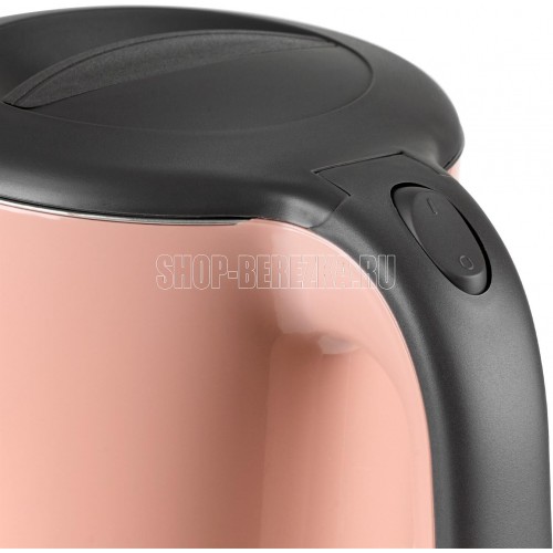 GALAXY GL 0330 РОЗОВЫЙ Номинальная потребляемая мощность 2000 Вт Объем 1,7 л Скрытый нагревательный элемент Двойная стенка из нержавеющей стали 18/10 и пищевого пластика Автоотключение при закипании Автоотключение при отсутствии воды Указатель минимального и максимального уровня воды Индикатор работы Длина шнура питания 78 см