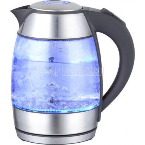 1,8 л. Термостойкое стекло. Мощность 2200 Вт. Закрытый нагревательный элемент, Защита от включения без воды, Защита от перегрева, Фильтр от накипи Габариты изделия/упаковки 221.8* 156.3 * 230/21*18*23.8. Вес нетто/брутто 1,27/1,38