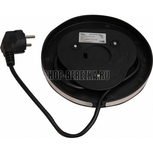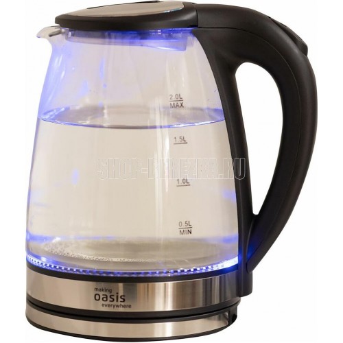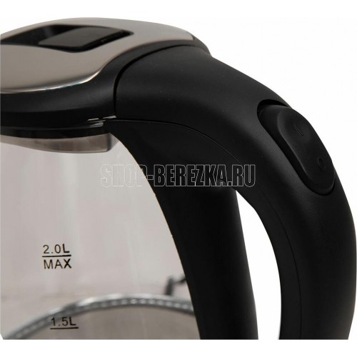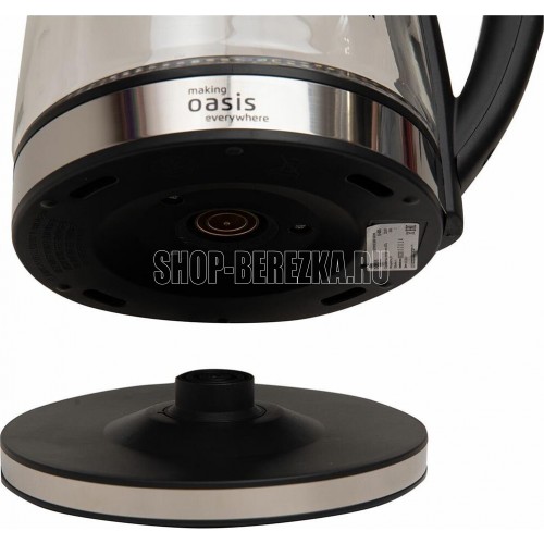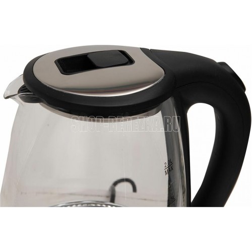 Цвет Черный с основанием из нержавеющей стали Материал полости Термостойкое стекло Параметры электросети, В/Гц 220/50 Мощность, Вт 2000 Объем, л 2 Автоотключение Защита от включения без воды 360° поворот корпуса LED подсветка