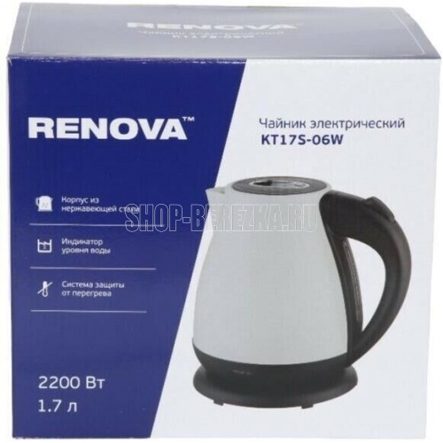 1,7 л. Нержавеющая сталь, покрытие под кожу. Мощность 2200 Вт. Закрытый нагревательный элемент, Защита от включения без воды, Защита от перегрева, Фильтр от накипи Габариты упаковки 240 * 180 * 210 . Вес нетто/брутто 1.2/ 1.33 кг