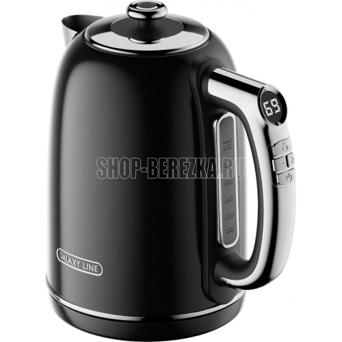 Чайник электрический Galaxy LINE GL 0360, черный агат, металл, 2200 Вт, 1,7 л, OTTER контроллер, корпус из нержавеющей стали AISI 304, установка температуры от 40 до 100 °C, функция поддержания температуры, шкала уровня воды, съемная крышка