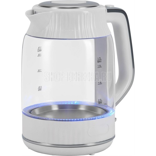 Максимальный объем 1.7 л Мощность 2200 Вт Нагревательный элемент скрытый Материал корпуса стекло/пластик Температурные режимы 1 шт Индикация включения, уровня воды Дополнительные функции:отсутствует Безопасность:автоотключение, защита от включения без воды Конструктивные особенности: кнопка открытия крышки, подсветка воды, подставка 360, фильтр от накипи