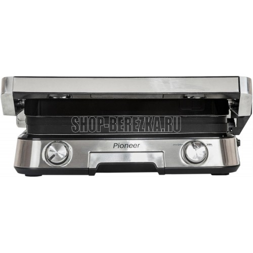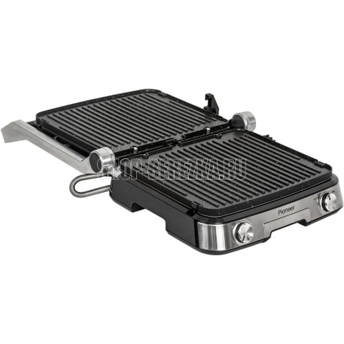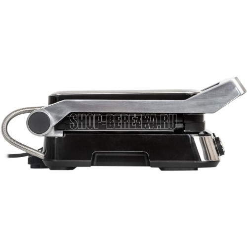 Тип управления: электронное Регулировка температуры: есть Варианты использования гриля: закрытый/открытый/105° Съемные нагревательные панели: есть, двусторонние (рифленая и плоская) Покрытие нагревательных панелей: антипригарное Размер панелей, мм.: 31x26 Съемный поддон для сбора жира: есть Индикаторы: работы, нагрева Комплектация: электрический гриль, 2 съемные панели, сменная панель, поддон для сбора жира, пластиковая лопатка, гарантийный талон, инструкция на русском языке Материал корпуса: сталь Цвет: серебристый Максимальная потребляемая мощность, Вт.: 2000 Электропитание, в., Гц.: 220-240, 50 Дополнительная информация: панели можно мыть в посудомоечной машине