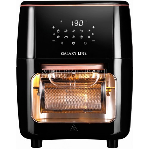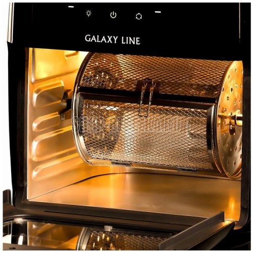 GALAXY LINE GL 2523 Аэрогриль мультифункциональный, мощность 2000 Вт, объем камеры 13 л, регулировка температуры приготовления от 65 до 200 °С , таймер на 60 минут («Сушение» - от 30 минут до 24 часов) LED-дисплей, защита от перегрева, прорезиненные ножки, препятствующие скольжению, номинальное напряжение 220-240 В ~ , номинальная частота 50 Гц