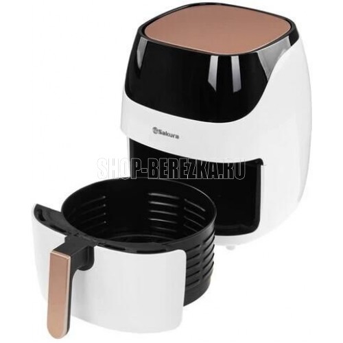 Аэрогриль, 1500 Вт, чаша с антипригарным покрытием Teflon 5,0 л, таймер на 60 минут, регулировка температуры 80-200С, сенсорное управление, LED дисплей, готовит без масла или с минимальным его использованием. Автоматическое отключение питания при извлечении корзины. 8 предустановленных программ меню. Подходит для всех блюд, которые готовятся в духовке. Размер устройства без упаковки: 300?300?340 мм. Длина шнура: 1м.