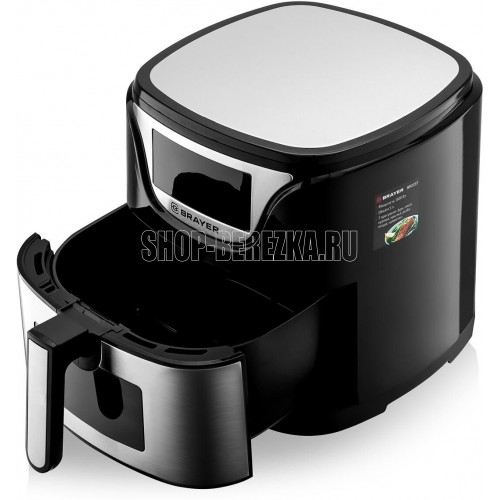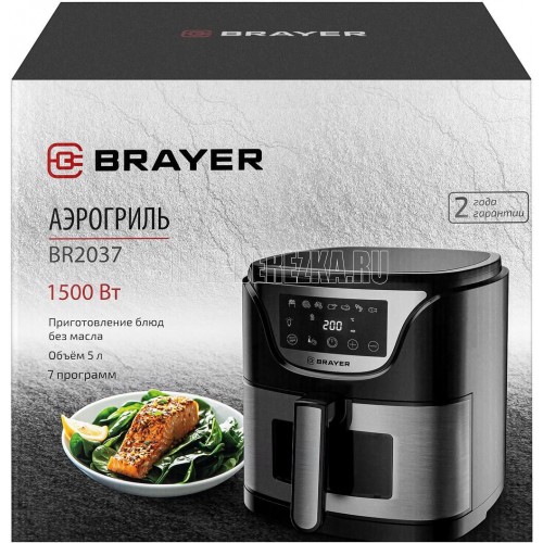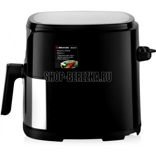 Мощность 1500 Вт Объем 5 л 7 программ: фри, пицца, курица, крылья, мясо, креветки, рыба Корпус из высокопрочного пластика, декорирован нержавеющей сталью Функция подогрева пищи Сенсорное управление LCD-дисплей Регулировка температуры 80–200 °С Таймер до 60 мин Съемная решетка с антипригарным покрытием Звуковой сигнал готовности блюда Электропитание 220-240 В, ~ 50-60 Гц