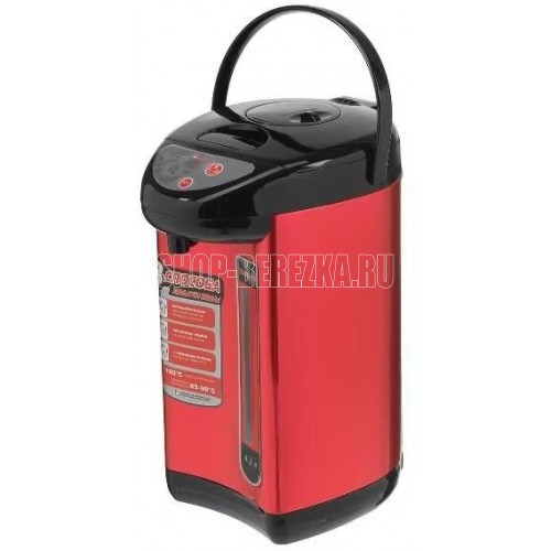 4.2 л, 750 Вт, повторное кипячение, поддержание температуры, 3 способа подачи воды (помпой, кнопкой на панели. нажатием чашкой), колба нерж.сталь, съёмная крышка, красн./черн.
