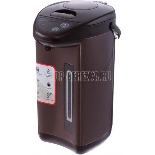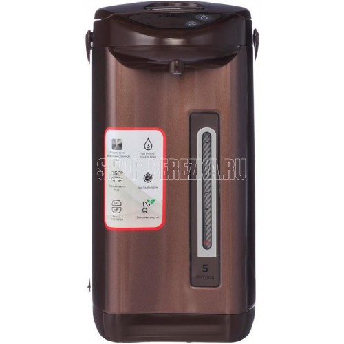 Мощность 750 Вт Объем 5 л Скрытый нагревательеый элемент Отключение при закипании Функция повторного кипячения Съемгная крышка Индикатор уровня воды Индикация включения Вращающийся корпус на 360° Ручка для переноски Поддержание температуры воды Материал корпуса - металл/пластик Цвет Коричневый Срок гарантии 12 мес