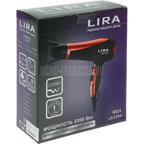Мощность 2200 Вт, Напряжение сети 220 В, 2 скорости потока воздуха, 3 температурных режима, Функция "Холодный воздух", Защитная решетка, Насадка-концентратор.