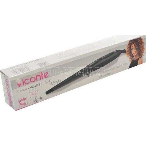 Щипцы для завивки конусные, мощность 40 Вт, керамическое покрытие рабочей поверхности, диаметр – 13-19 мм, вращающийся шнур, максимальная температура нагрева–200 градусов, время нагрева – 2 минуты, вращающийся шнур.